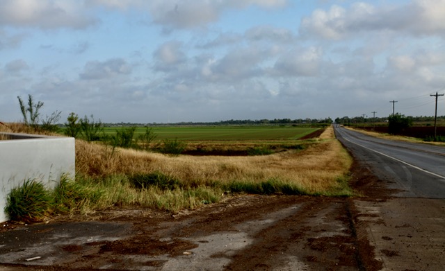 A panoramic view, overlooking the southern part of Pharr, Texas, towards the U.S/Mexico border, reveals a magnificent landscape of milpas, stretched out in rows of planted crops and open skies. Some of these fields are tended by small groups of people, perhaps families, intensely laboring over the harvested produce. These fields were in abundance decades ago, but urban encroachment has steadily diminished a great deal of what used to exist in both lifestyle and livelihood. The Rio Grande River (also known as el Río Bravo), which serves as the two-country boundary, provides the water that sustains the fertile banks and irrigation canals.